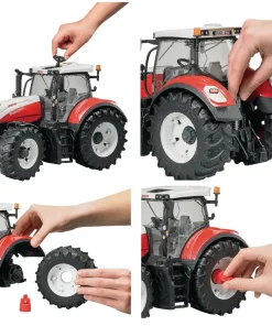 La potencia, la durabilidad y la eficiencia a menudo representan elementos cruciales en un día de trabajo en carreteras y obras de construcción. Por eso, el nuevo Mercedes-Benz Arocs se ha desarrollado especialmente para estas necesidades. El diseño también se ha revisado para que coincida con estas características técnicas. Por ejemplo, la parte delantera de la parrilla del radiador está diseñada con el aspecto típico de Arocs, que refleja su enorme potencia. Con este modelo nos enfocamos intensamente en la durabilidad que caracteriza a los productos BRUDER y equipamos la cabina con una puerta que se abre para que las figuras de juguete de BRUDER accedan al vehículo. La grúa de carga está equipada con un agarrador de madera para mover los troncos. La cuchara para madera se puede bloquear en la posición abierta. Cuando se va a agarrar un tronco, el agarrador de madera se baja sobre él y cuando se hace contacto en el medio, el agarrador se cierra automáticamente. Ese es solo un ejemplo de la funcionalidad de este camión. Otros aspectos destacados son los soportes de la grúa que se extienden y bajan, así como las cadenas en los puntales de la plataforma de carga para asegurar las cargas. Por supuesto, los montantes también se pueden plegar para cargar la madera lateralmente. En la parte trasera, el camión se puede descargar inclinando la plataforma de carga.
