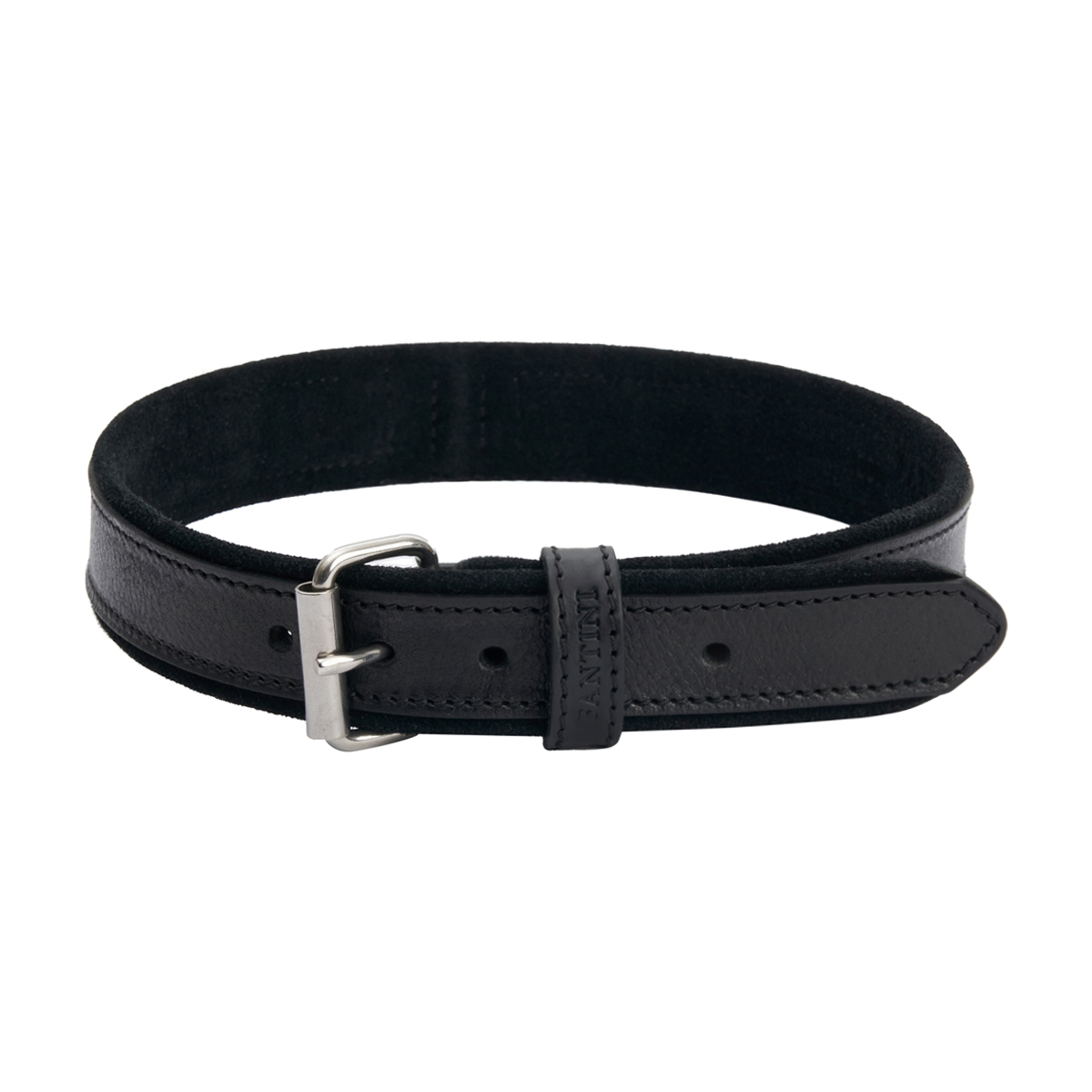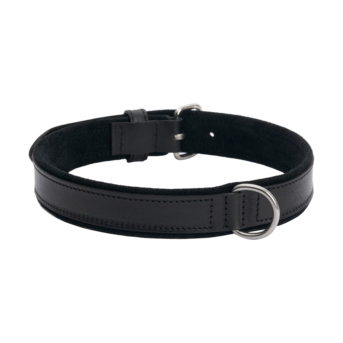 Collar de cuero y ante negro para perros: elegancia y confort italiano