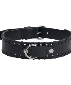Collar Titano de cuero negro con costuras decorativas y hebilla de acero