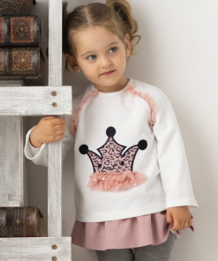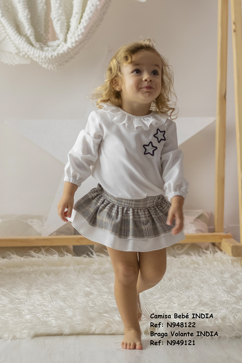 Conjunto bebe niña que consta de camisa con volante cuello, elástico en puños y adorno en el delantero, braga volante con elástico en cintura, pierna y totalmente forrado. Características: