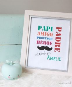 Este diseño está también disponible sobre camiseta, tanto para el papá como para el resto de la familia, y sobre taza de loza, ¡para que puedas regalarle un pack completo!