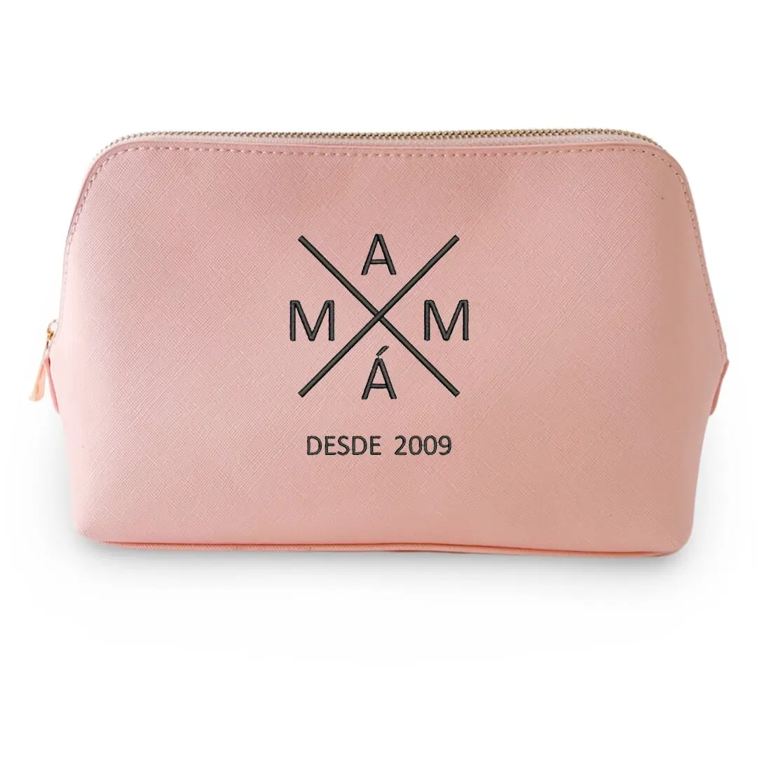 Neceser bordado para mamá, en varios colores. Su tejido repelente al agua lo hace perfecto para llevar en cualquier viaje. Al ser semirigido protegerá perfectamente todos los accesorios de maquillaje o perfume. Un regalo super especial para mamá con el logo bordado en forma de cruz y el año desde el que es mamá.
