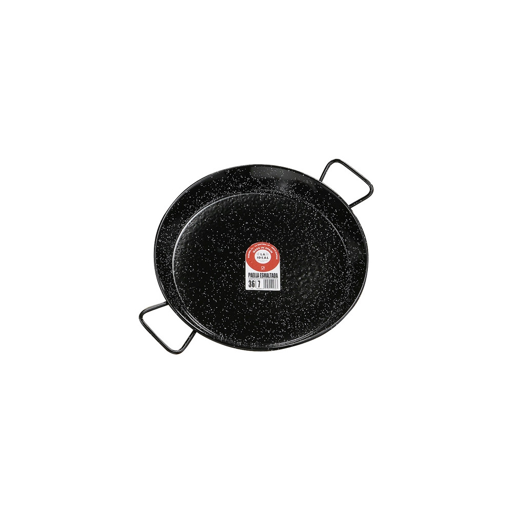 La Paellera Esmaltada varias medidas LA IDEAL, está fabricada en Valencia en chapa de acero laminado de alta calidad con una capa protectora de esmalte vitrificado. Se caracteriza por tener una limpieza fácil y una gran resistencia, lo que proporciona una vida útil más larga de nuestra paellera. La Paellera Esmaltada varias medidas LA IDEAL podemos encontrarla en distintos tamaños, adaptándose cada uno a un número de raciones aproximado. La paellera esmaltada, es muy valorada por los cocineros, ya que su calidad en el espesor de acero es lo que las hace más resistentes. Apta para usar al fuego (leña), gas y horno, para darle ese último toque tostadito. Aguantan durante años con un aspecto impecable (siempre que se mantenga en las condiciones adecuadas).