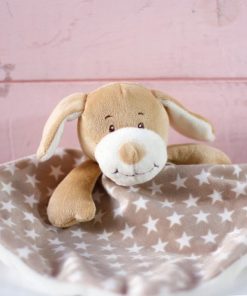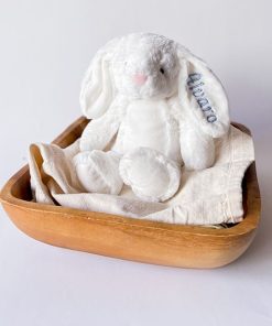 Conjunto de gorro para recién nacido de Gamberritos, patudos y manoplas fabricados en algodón 100%. Podemos bordar el nombre del bebé en el color que escojas. El set está disponible en varios colores, gris, rosa o azul.